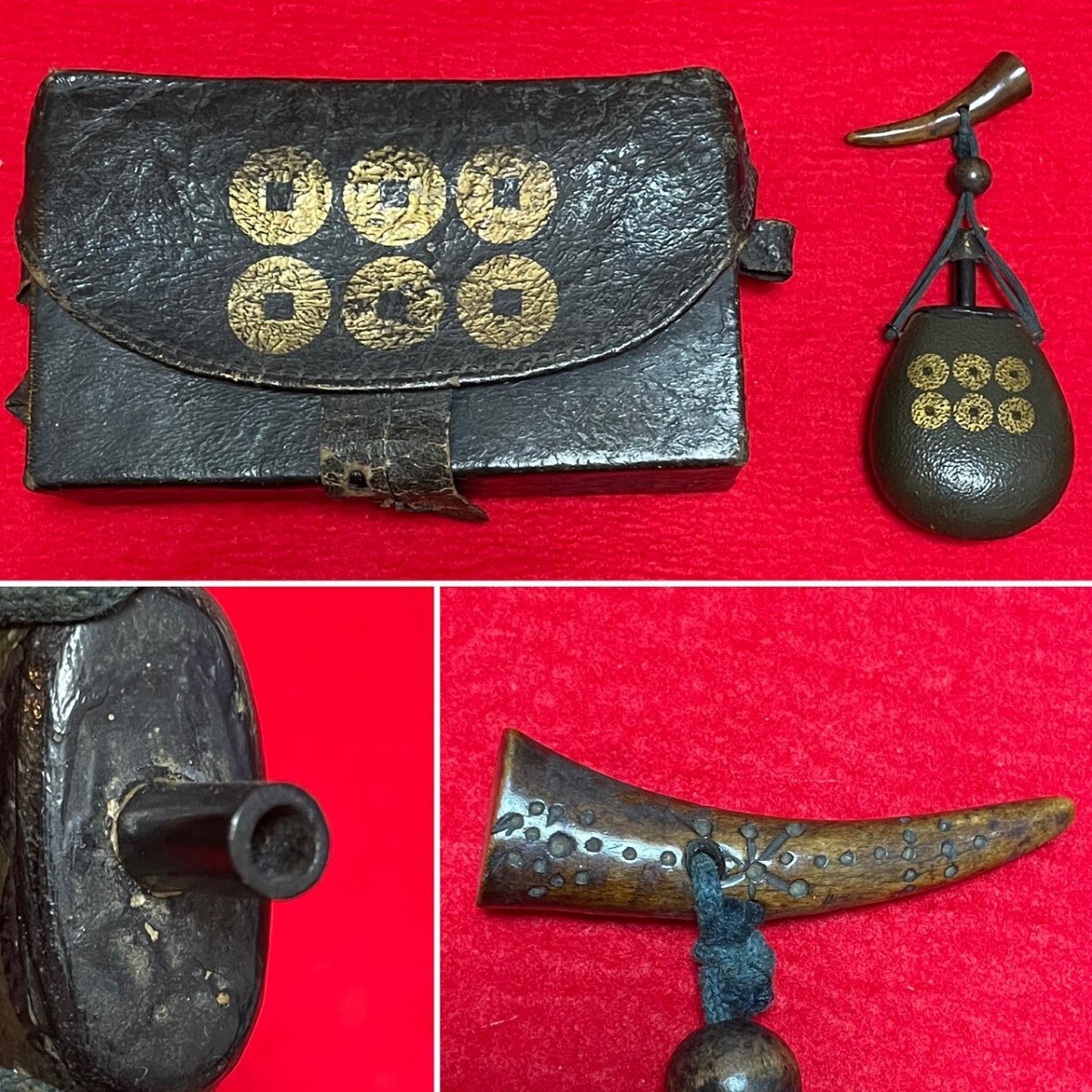 - 火縄銃 胴乱 口薬入れ 六文銭 真田家 古式銃 火薬入れ 弾入れ 革袋 武具 甲冑 鎧 兜 日本刀 刀剣 刀 刀装具 鍔 骨董品