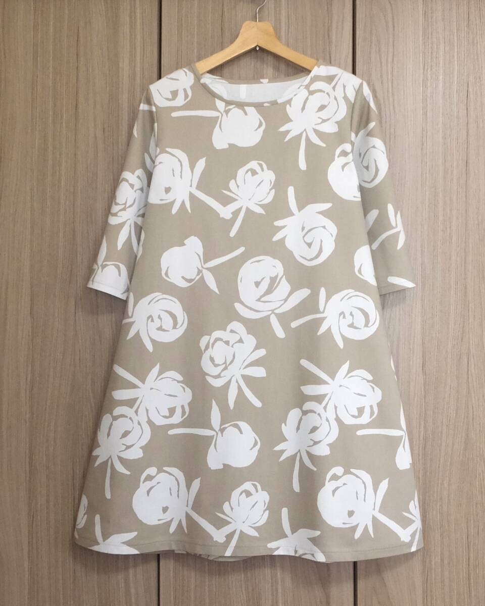 - ♪送料無料 ハンドメイド 綿 起毛コットン 花柄 ベージュ シンプルAラインワンピース♪