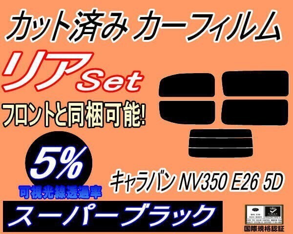 - カーフィルム スーパーブラック カット済み リアセット キャラバン NV350 E26 5ドア 5枚 (b) スモーク VR2E26 VW2E26 VW6E26
