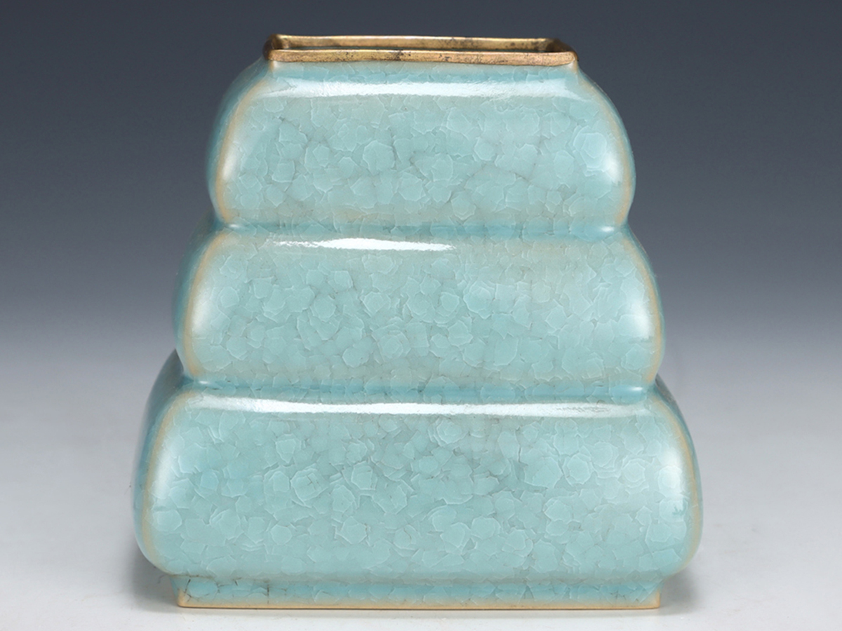 - ▽鴻▽宋時代 陶磁器 汝窯天藍釉三登方壺 箱付 時代物 中国古美術 骨董品
