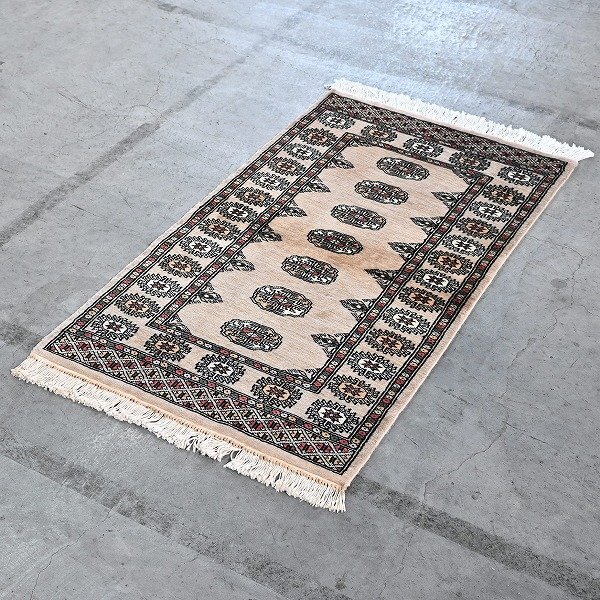 - 新品 未使用 パキスタン製 手織り ウール絨毯 ラグ ボハラ柄 ギュル文様 ハンドノット 羊毛 カーペット マット ホテル 応接室 P-92