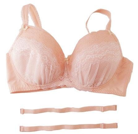 - SI4977-31◇ 新品 レディース インナー ブラジャー 替えストラップ付 谷間リボン飾り 肩ひも調節可 F95サイズ コーラルピンク 送料350円