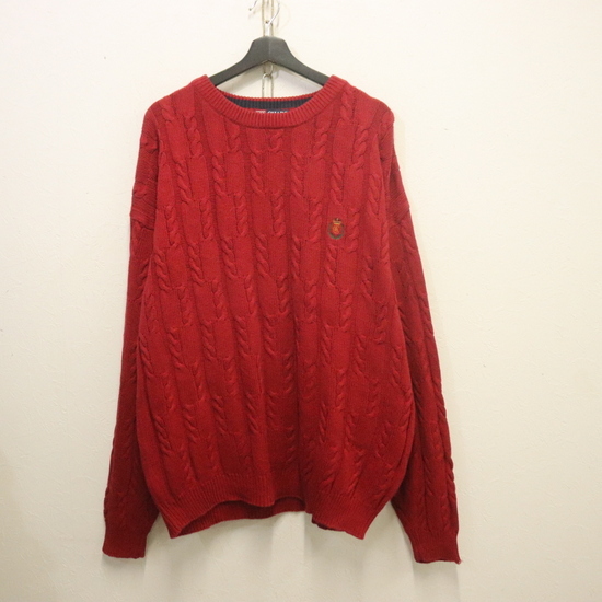 > m218 90sビンテージ チャップスラルフローレン コットンニットセーター■1990年代製 表記XLサイズ 赤 レッド ケーブル編み アメカジ 古着