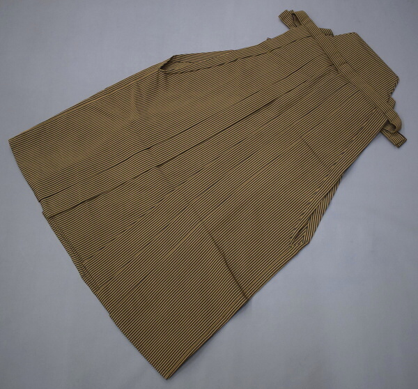 - A55-26【凛々】即決 中古品 正絹 男物 袴 馬乗型 茶 縞 82.5cm