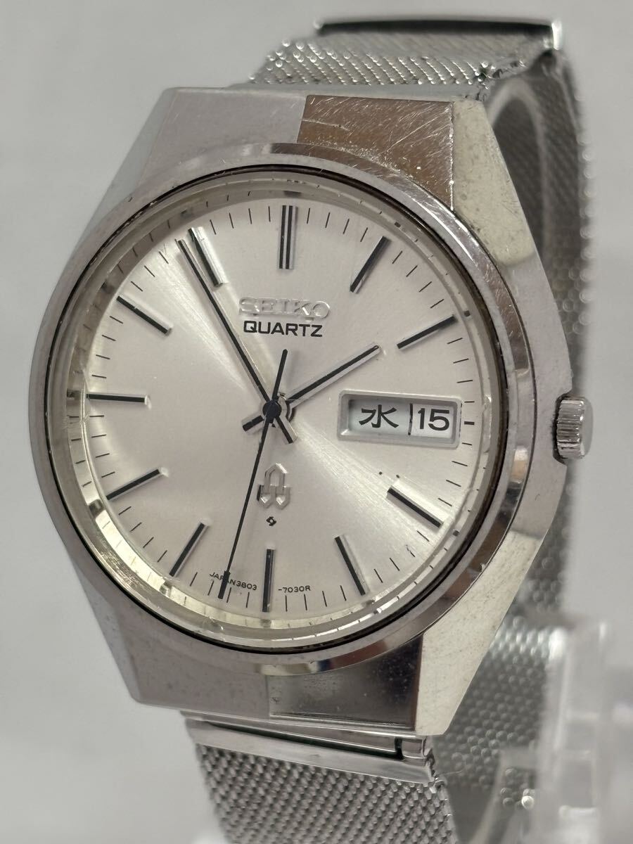 - 【228-27】1円〜【稼働品】SEIKO セイコー 3803-7020 クォーツ デイデイト シルバー メンズ 同梱不可