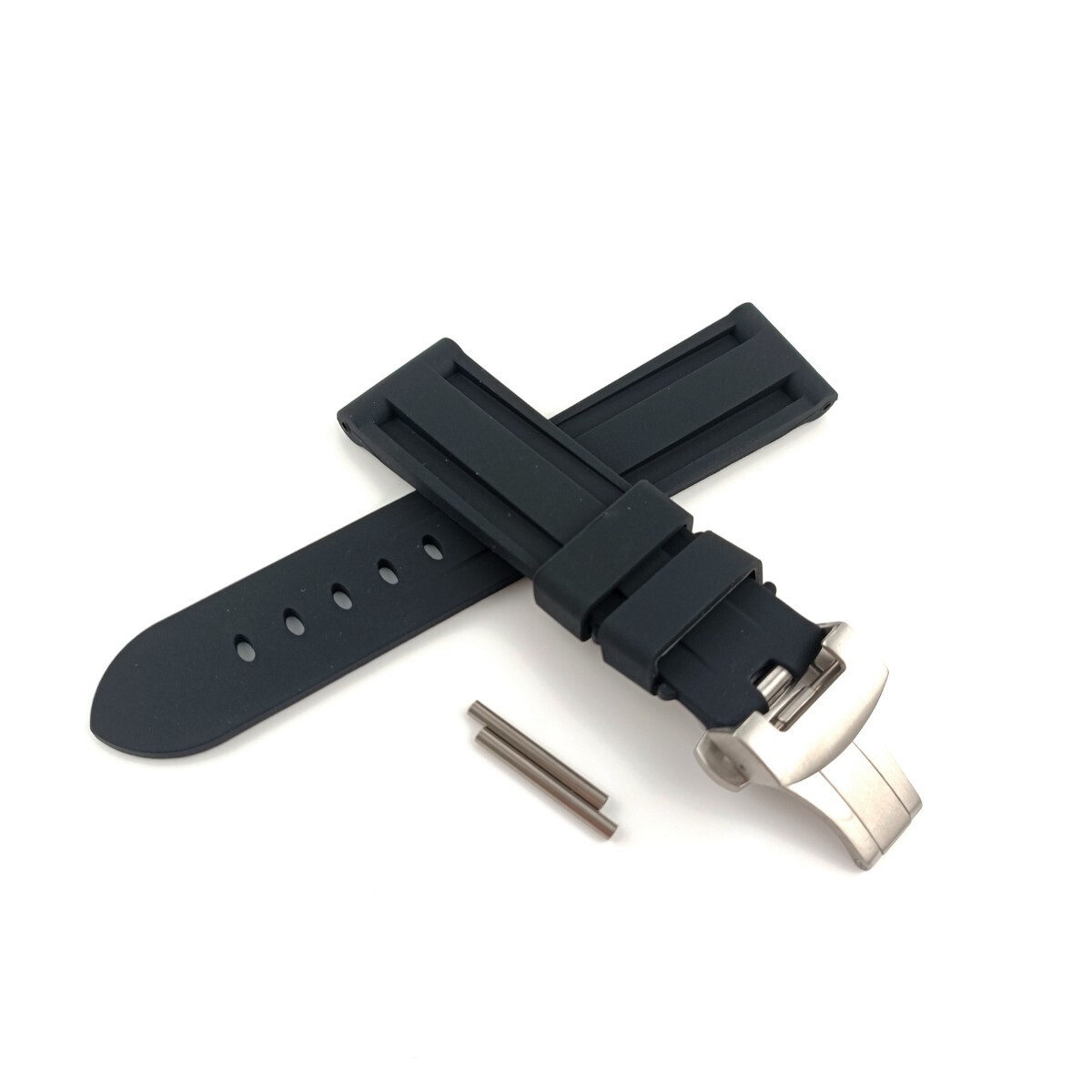 - 22mm パイプチューブ付属 腕時計 シリコン ラバーベルト ブラック 黒 Dバックル 【対応】 パネライ PANERAI