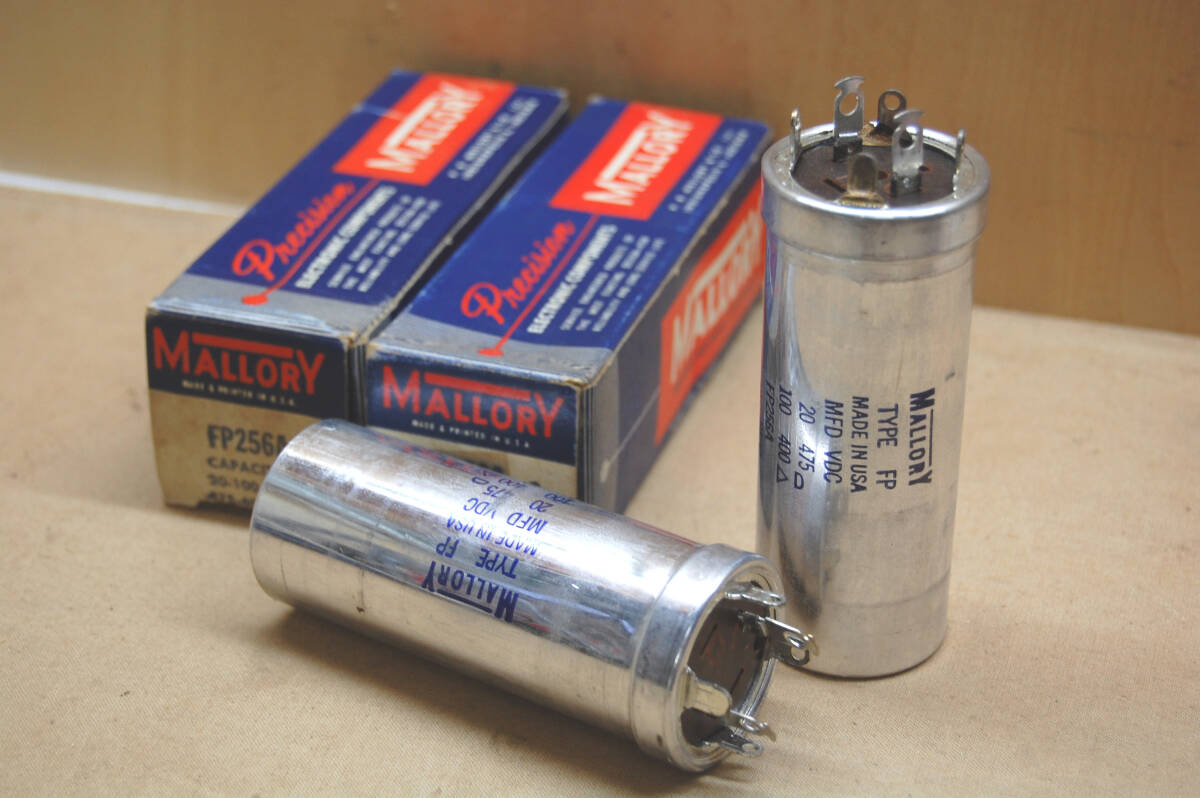 - MALLORY FP256A 20MF/475VDC+100MF/400VDC Electrolytic Capacitors in Original Box NOS 2pcs.