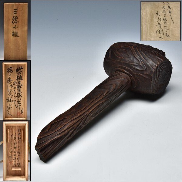 - U08839 仏師 彫刻家 大内青圃 識 三徳小槌 伝 即非 禅師 作 黄檗山 不動貯金銀行 牧野元次郎 頭取 秘蔵 伝来 日本芸術院 /G273