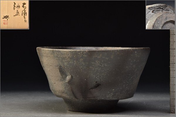 > U06138 浦上善次 備前 青備前 酒盃 酒呑 ぐい呑 酒器 共箱 岡山県 要無形文化財 /QR