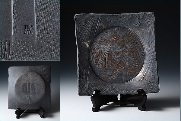 - SP1775 作家物 焼締 焼〆 角皿 菓子皿 懐石 会席 茶会