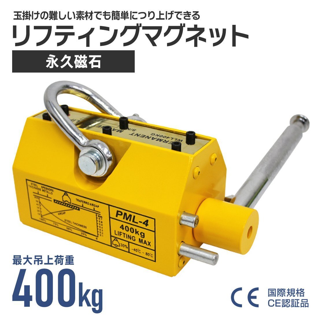 - リフティングマグネット 400kg 永久磁石 リフマグ 永磁リフマ マグネットリフター 電源不要 簡単操作 運搬用チェーンブロック 吊り上げ