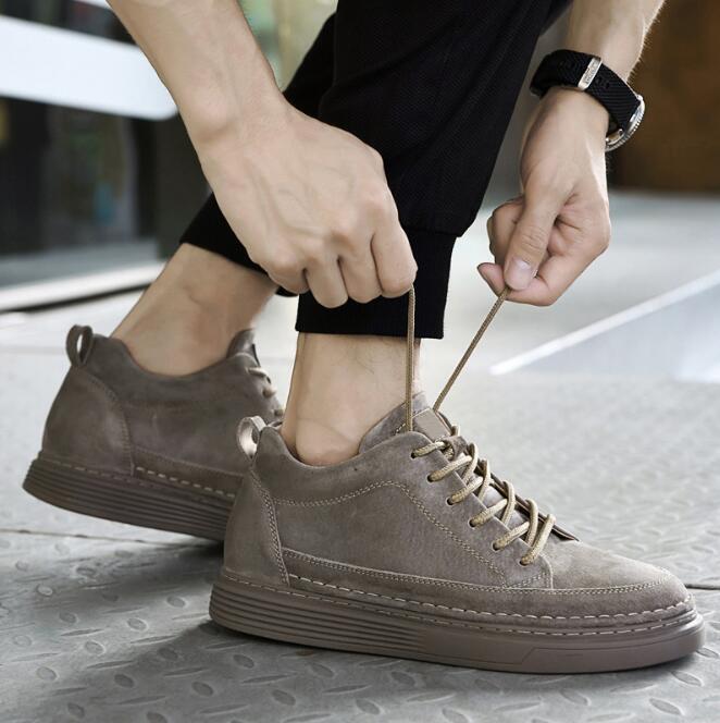 > 上質新品 シークレットシューズ スニーカー スリッポン メンズ 身長アップ カジュアル ドライビングシューズ 茶色 26.5cm