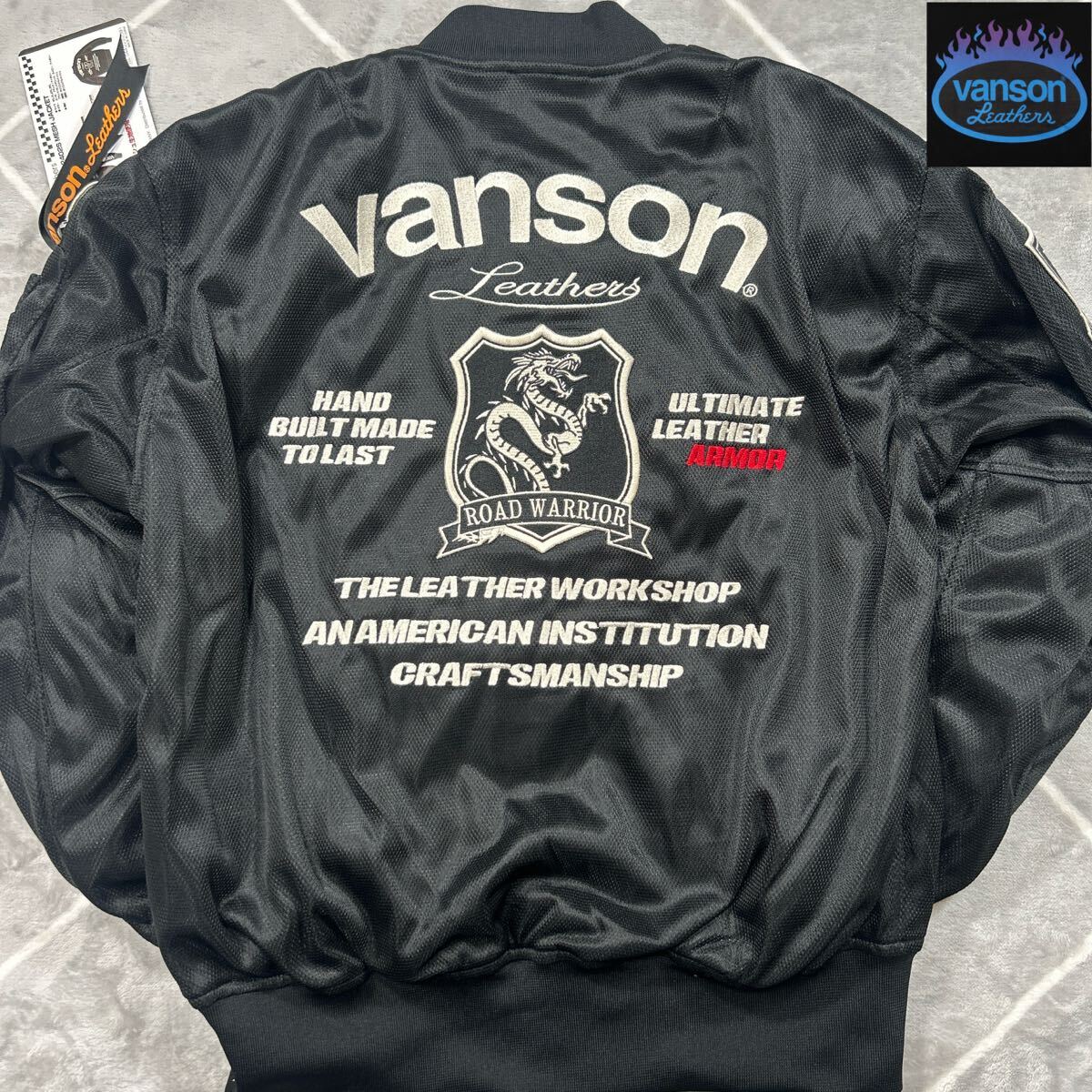 > 【新品XL】タグ付き VANSON バンソン レーシングジャケット ライダース 肘肩背中 安全パッド入り バックロゴ【抜群の存在感】レーサー◎