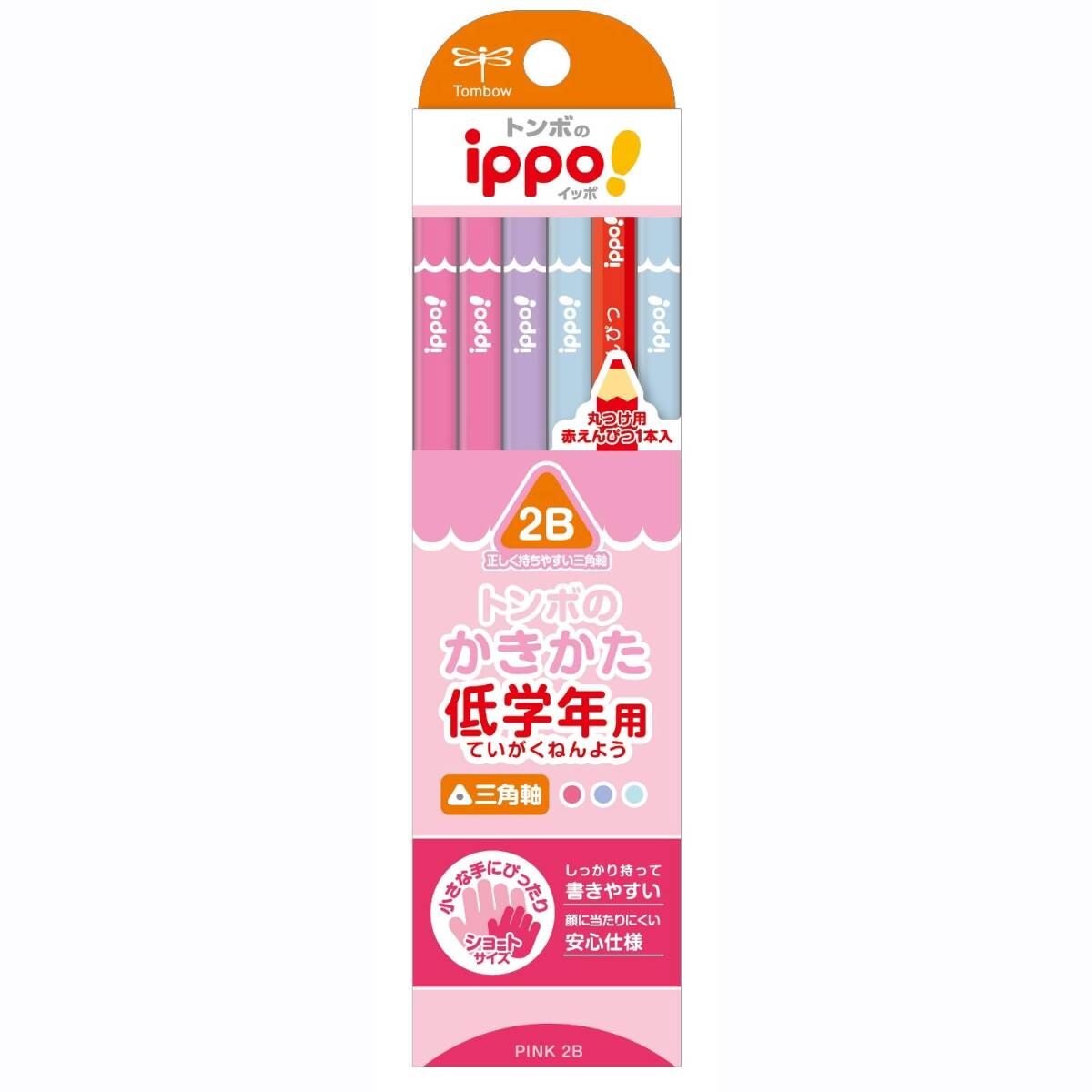 - トンボ鉛筆 鉛筆 ippo! 低学年用かきかたえんぴつ 2B 三角軸 プレーン Pink MP-SEPW04-2B