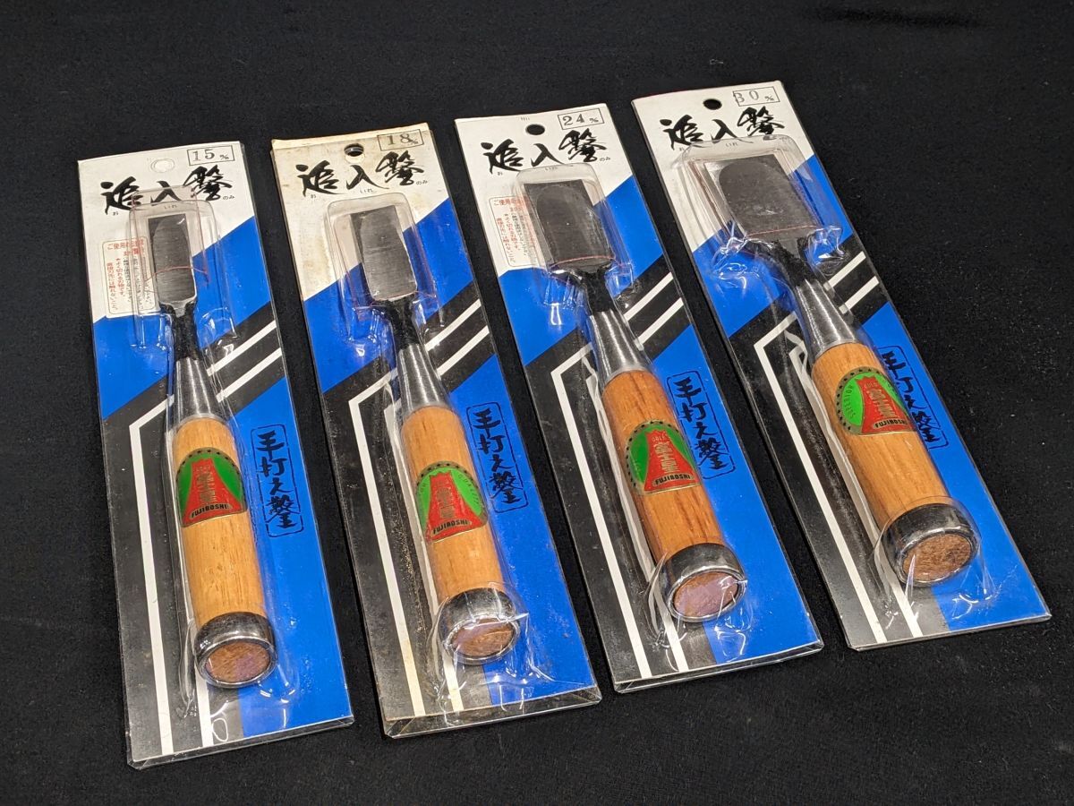 W374 新品未使用 富士星 追入鑿4点まとめ 赤樫 15mm 18mm 24mm 30mm/60