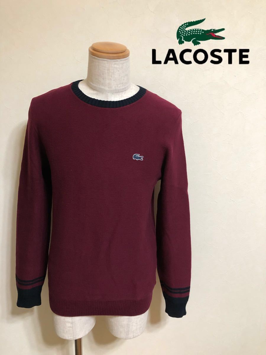 - LACOSTE ラコステ クルーネック 綿 ニットセーター トップス サイズ3 長袖 ボルドー 青ワニ ファブリカ フランス製 AH7922
