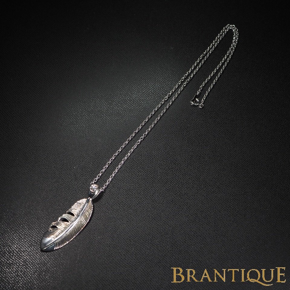 > ◆即決あり◆ SV シルバー 925 フェザーネックレス 1PD ダイヤモンド D0.344 鑑定書 14.3g ゴローズデザイン風 「27848」