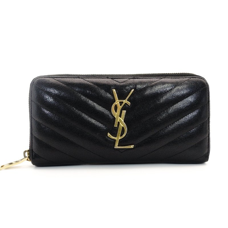 > サンローラン SAINT LAURENT 長財布 ブラック YSL ロゴ 黒 レザー ジッパー ゴールド金具 7-7-753