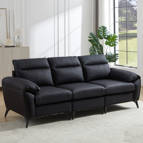 > ソファー ソファ 3人掛け 幅205cm 3人掛け 北欧 ソフトレザーソファー 3p モダン モダン リビングソファー ハイバック【ブラック】 KU597