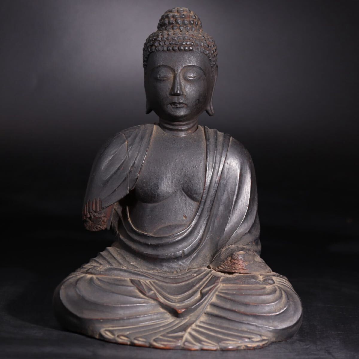 - 時代 木製 阿弥陀如来像 / 仏教美術 仏像 木工芸 置物 検索: 中国美術 李朝 韓国 .G2818