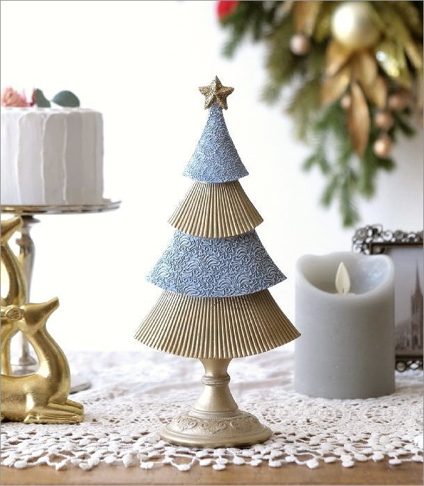- クリスマスツリー 卓上 オブジェ 置物 Xmas 飾り 雑貨 ナチュラル ウインターブルーのプリーツツリー 送料無料(一部地域除く) hal5132