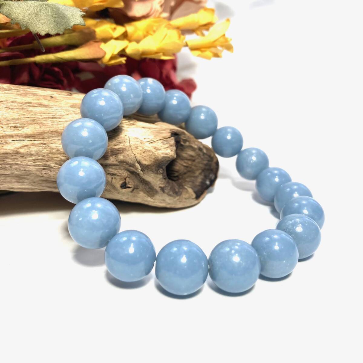 - エンジェライト パワーストーン ブレスレット 12mm 天然石ブレス シンプル 数珠ブレス メンズ・レディース 男性 女性 人間関係 家庭円満