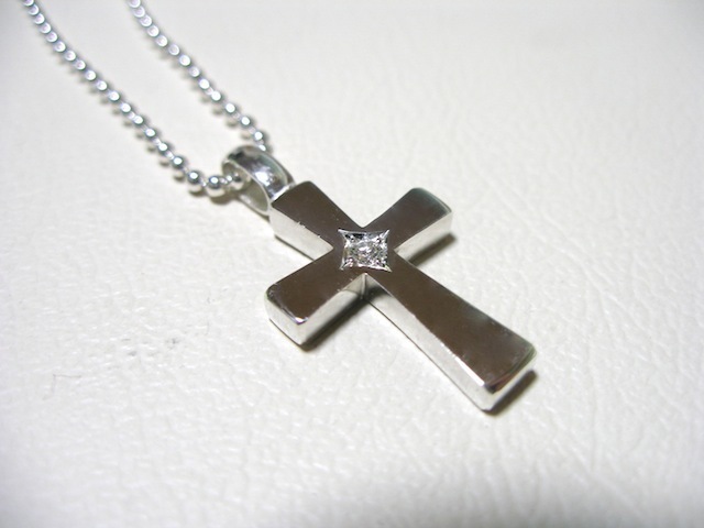 - 仁尾彫金『一つ星ダイヤフラットシルバークロス』ハンドメイド426