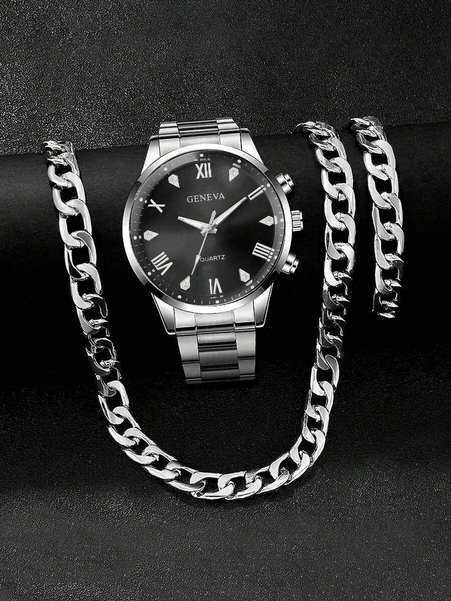 > 腕時計 メンズ セット メンズ&ボーイズ カジュアルスポーツ ステンレス製クォーツ腕時計、ブレスレット、ネックレスセット 3点セッ