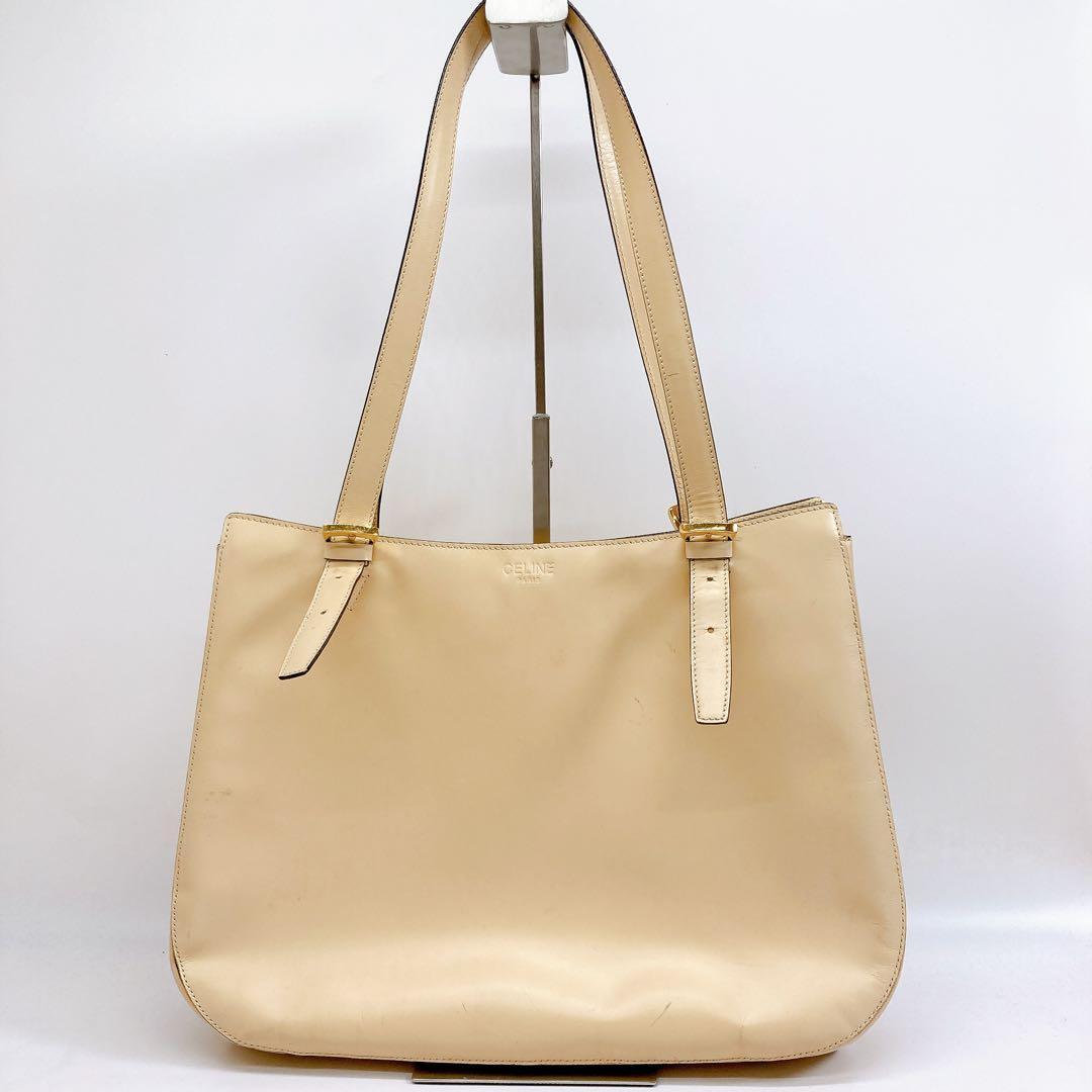 - 激レアCELINE セリーヌ トートバッグ ロゴ型押し 肩掛け ベージュ レザー 革