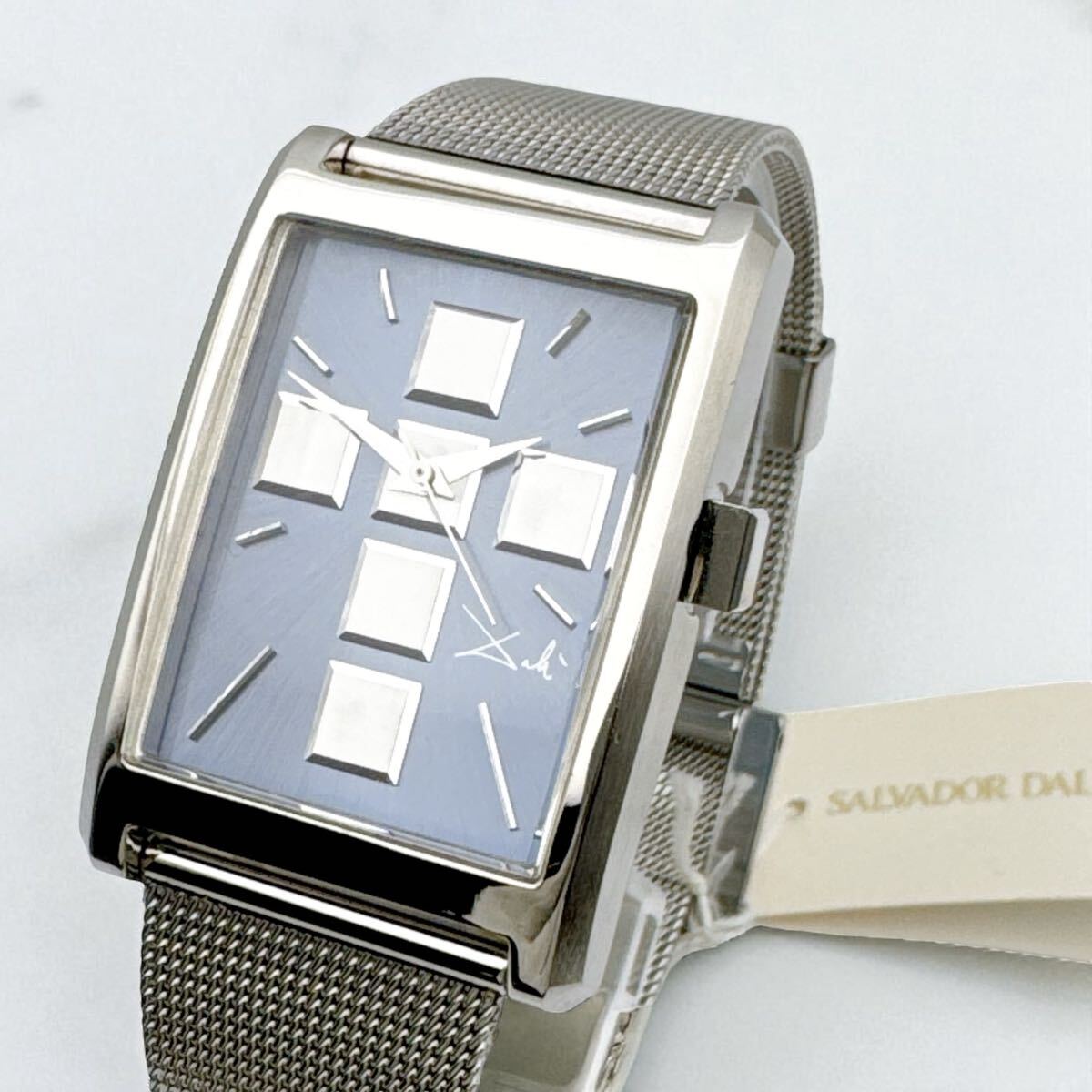 > 【希少】SALVADOR DALI サルバドールダリ 十字架文字盤 スクエア メッシュベルト 腕時計 メンズウォッチ シルバー クォーツ 稼働品