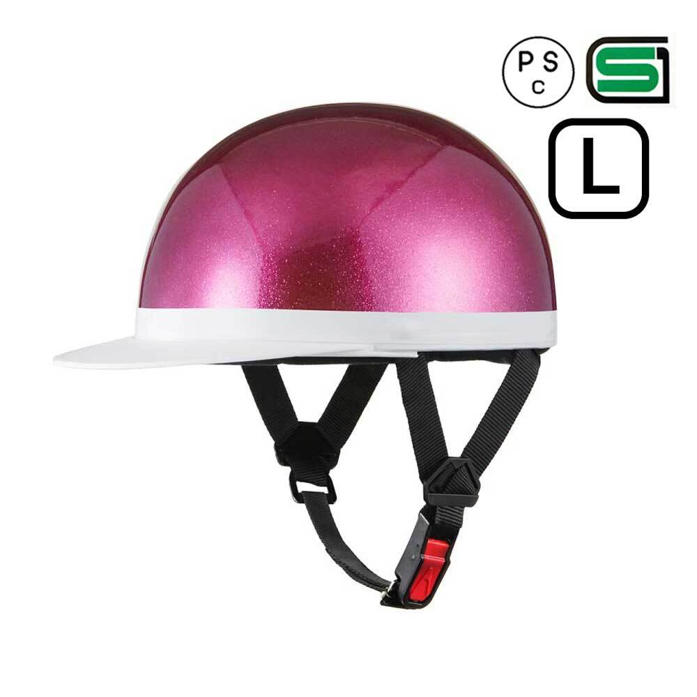 > バイクヘルメット 半キャップ 半ヘル 白ツバ Lサイズ 57~59cm SG規格 PSCマーク ハーフヘルメット ヘルメット パープルラメ オートバイ