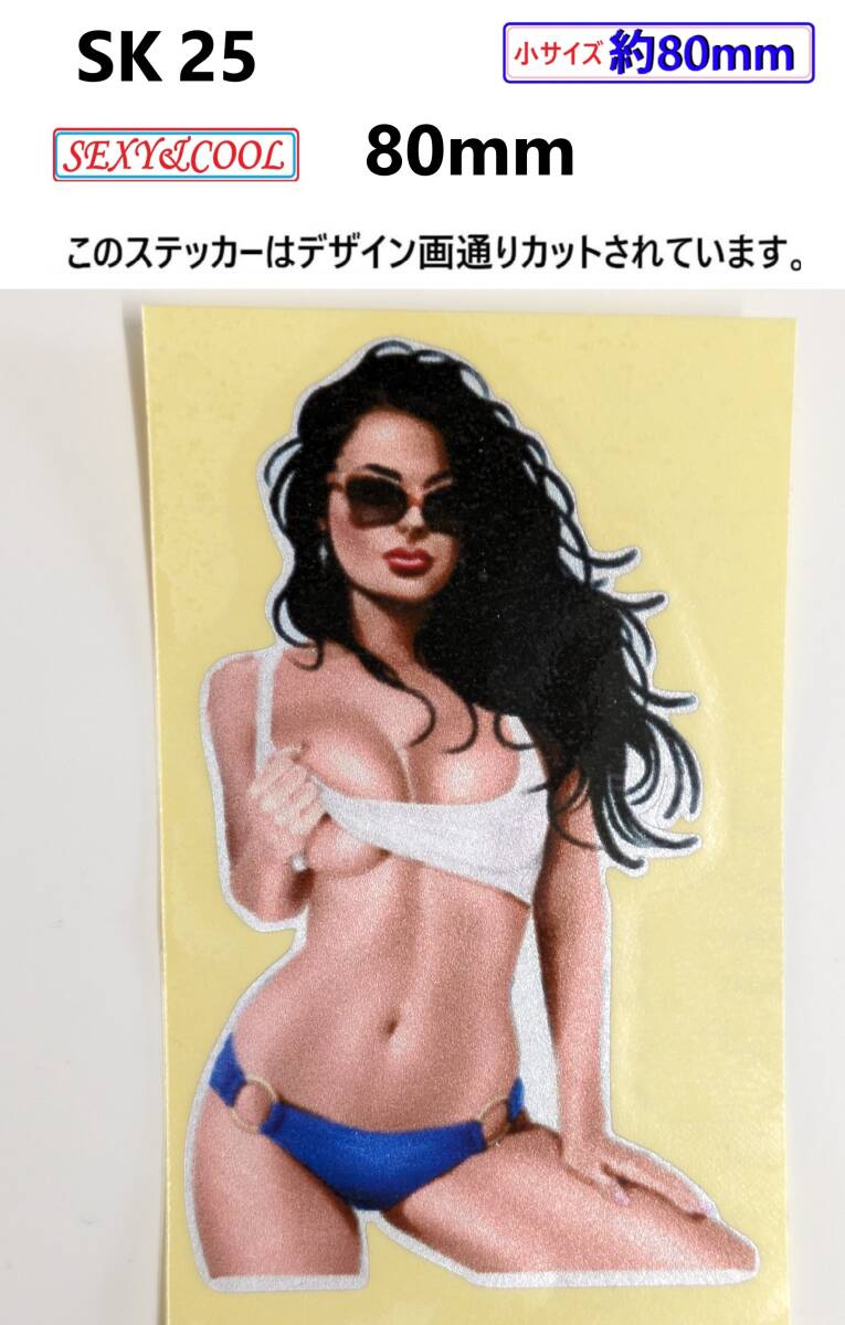 - 80mm級 SK25-19 キラキラ 美人 クール 水着 カッコいい セクシーガールステッカー セクシーステッカー レトロ ギター PC スマホ ボード