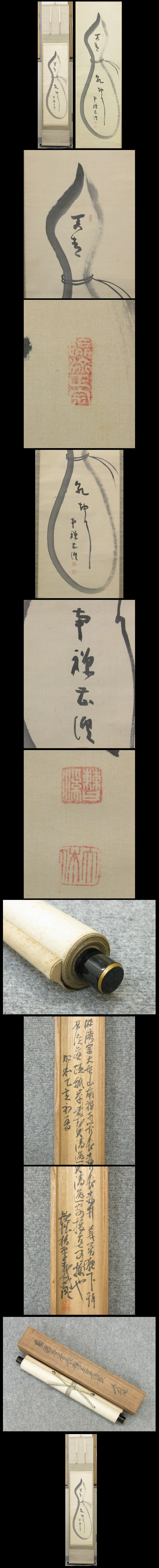 - 【心庵】掛軸 赤井義勇 臨済宗 南禅寺派管長 絹本 瓢箪図/肉筆 極箱 真作 B534