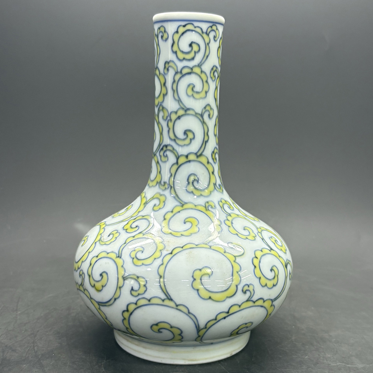 - ▽鴻▽明朝時代 陶磁器 黄釉唐草紋胆瓶 明成化年製款 共箱 時代物 中国古美術 骨董品