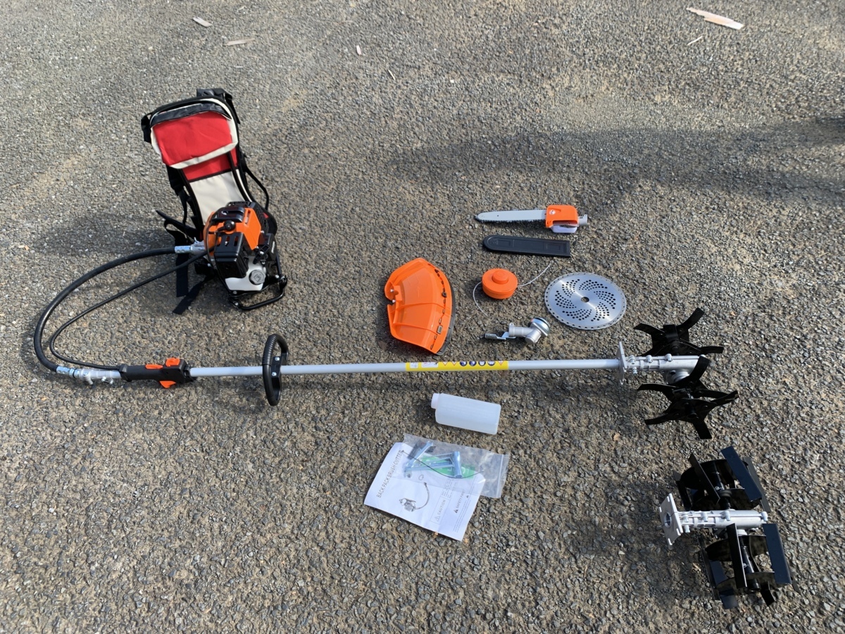 - 背負い 草刈機 チップソー ナイロンカッター チェーンソー 耕運機ローター、草刈りローター 交換自在 52cc 新品