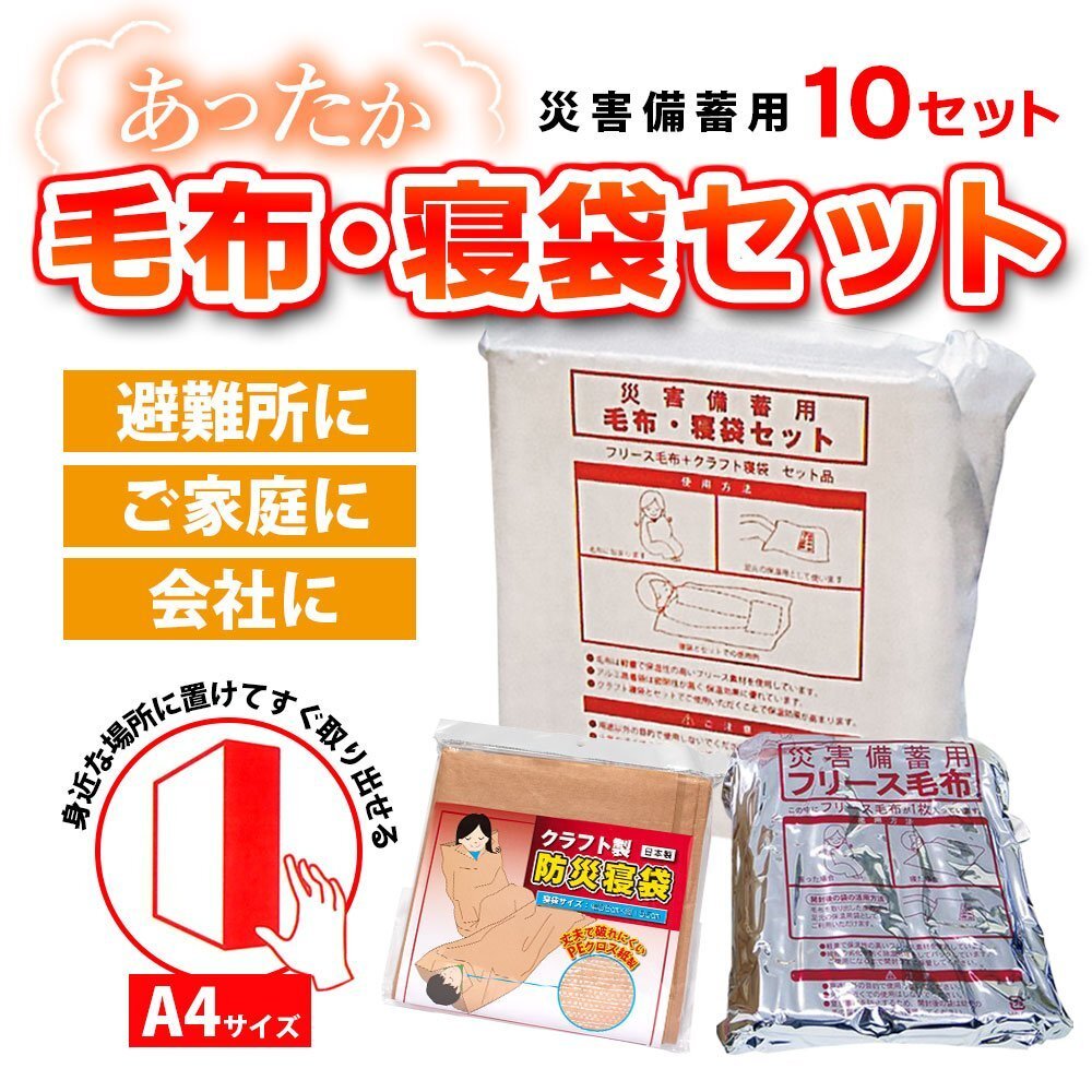 - 送料無料 《 10セット 》毛布・寝袋 2点セット (代引不可)※個人配送不可 / 防災用品 / 非常用 / 緊急事態 / 避難所 / 車内 / キャンプ
