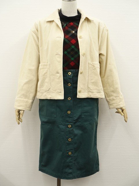 - 美品 UNIQLO等 ジャケット+カットソー+スカート コーディネート3点セット M相当 クリーム/黒×赤×緑 チェック&グレー&黒/緑 カジュアル