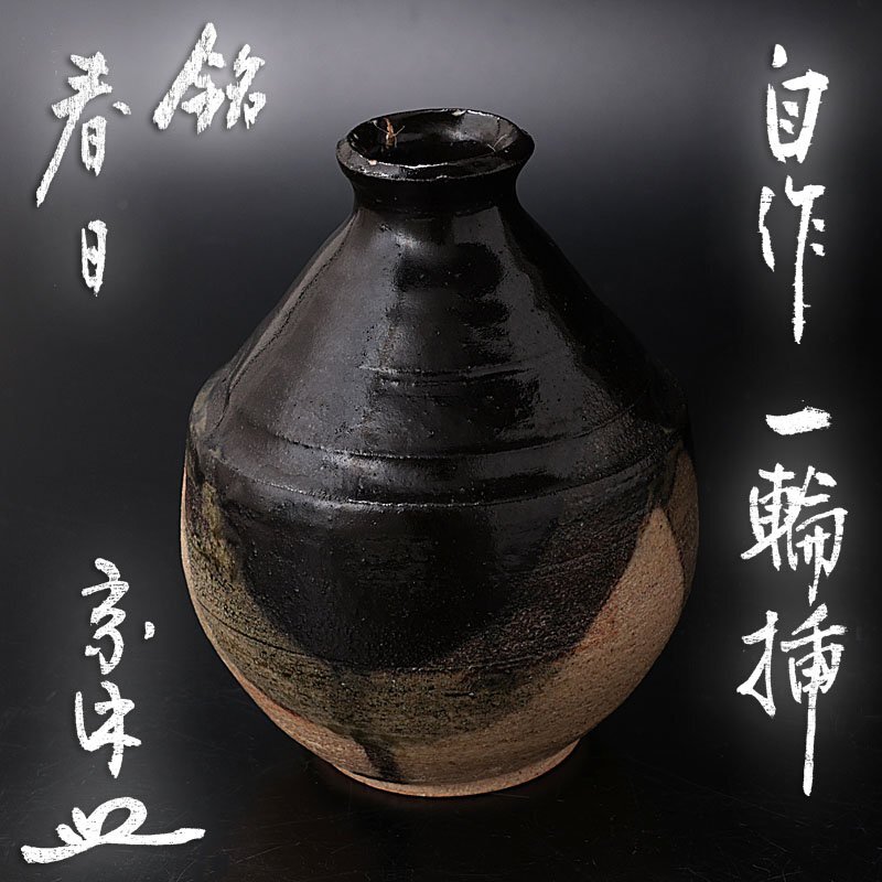 > 【古美味】臨済宗妙心寺派管長!正眼寺住職 山川宗玄 自作一輪挿 銘:春日 茶道具 保証品 k4XV