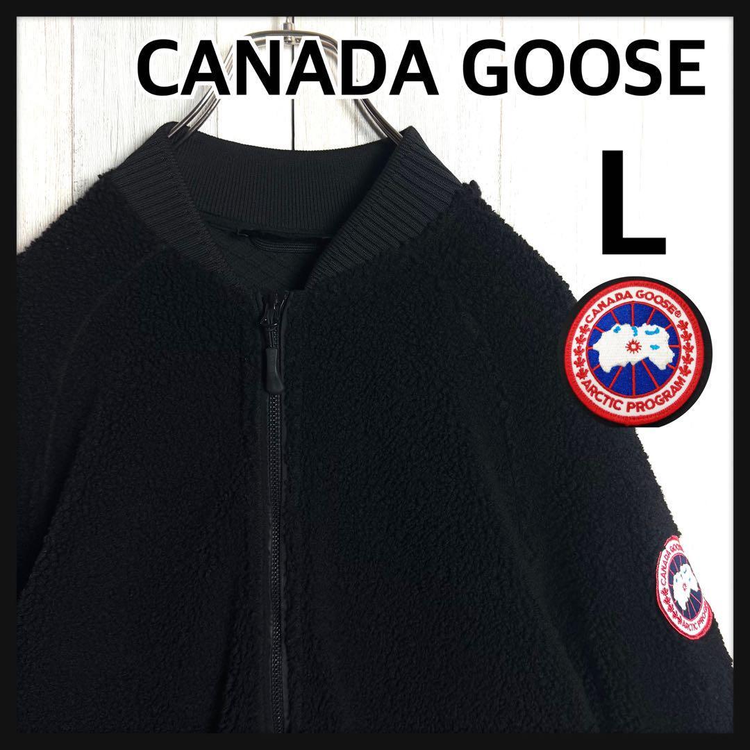 - 【希少デザイン・美品】CANADA GOOSE カナダグーズ 刺繍ワッペンロゴ ボアフリース ボンバージャケット ブルゾン ブラック・黒 L