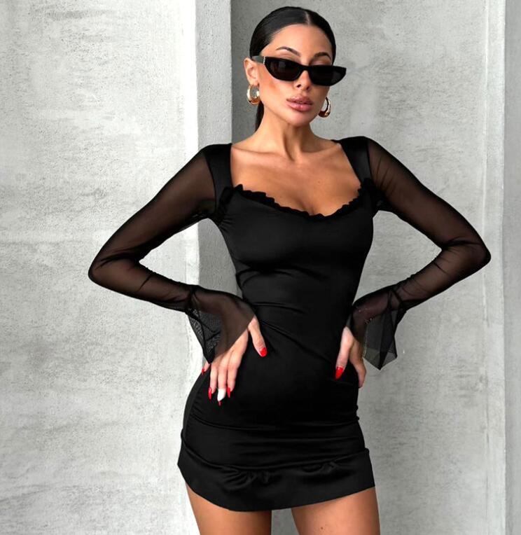 - M1016 ワンピースレディース● 着心地抜群 20代30代40代 ● 新作 長袖 sexy ミニ丈 black