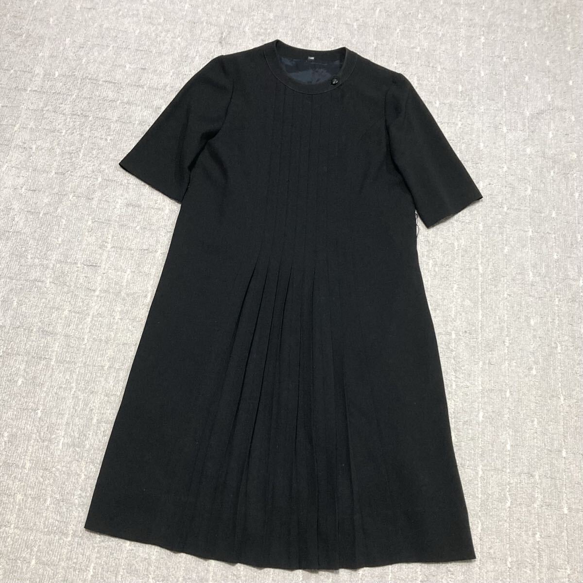 - 日本製 ブラックフォーマル フォーマルドレス ワンピース ノーカラー フロントジップ プリーツ タック ロング 半袖 冠婚葬祭 礼服 喪服 M/L
