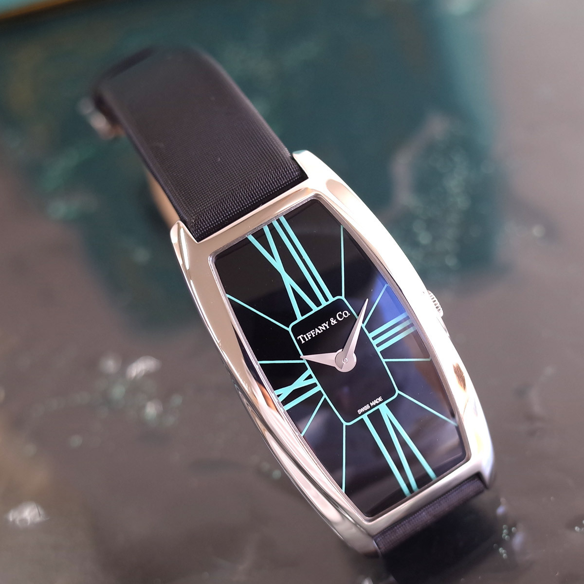 - ティファニー ジェメア Z640 トノー SS ブラックローマン 純正サテン革ベルト 純正尾錠 Tiffany&Co. 1年保証
