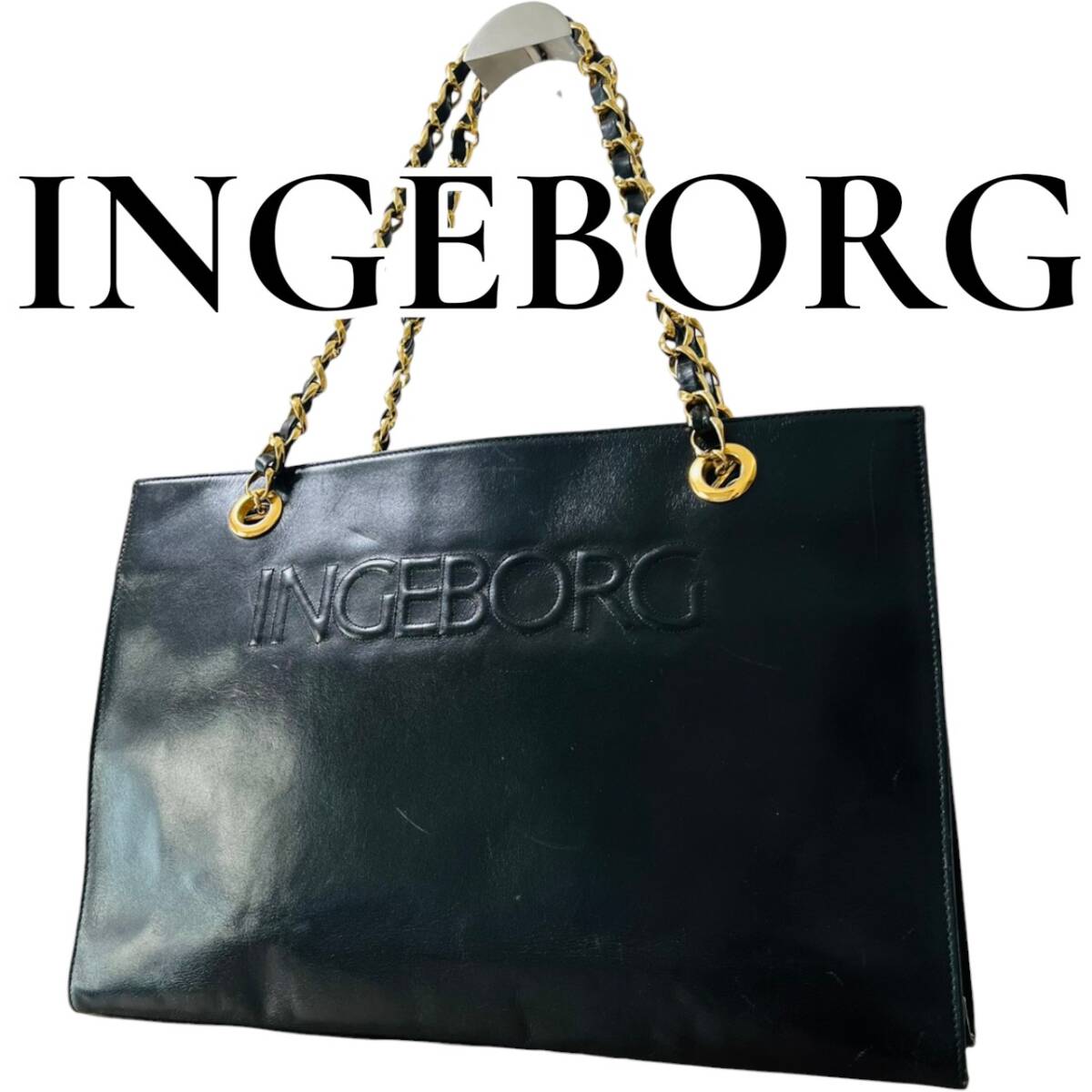 - 【美品】INGEBORG トートバッグ 大容量 A4以上 チェーン 肩掛け 黒