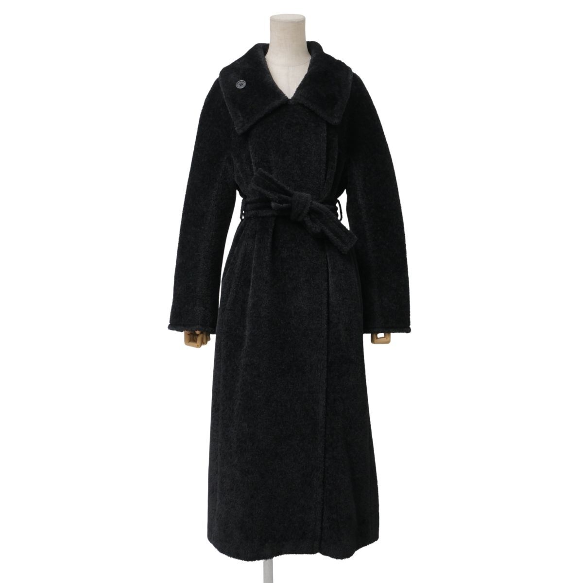 - MI1970》イタリア製 マックスマラー MaxMara ロングコート ウール アルパカ ダブルブレスト 無地 サイズ38 ブラック