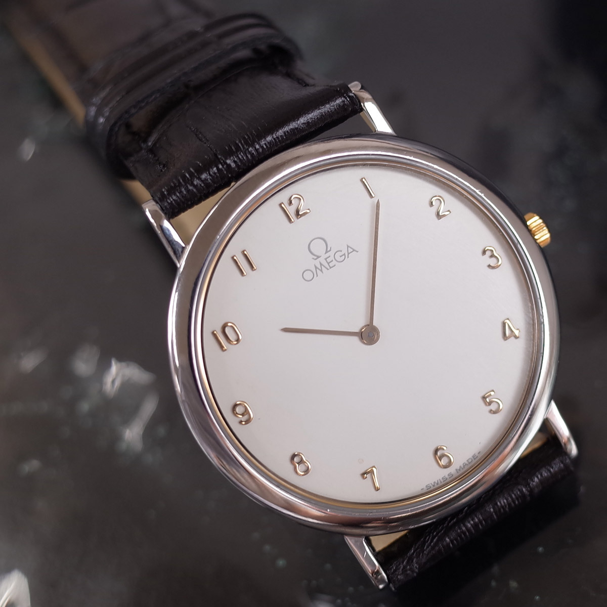 - オメガ 90’S アイボリー アラビアインデックス コンビ cal.1378 新品革ベルト メンズ クォーツ 腕時計 OMEGA OH済1年保証