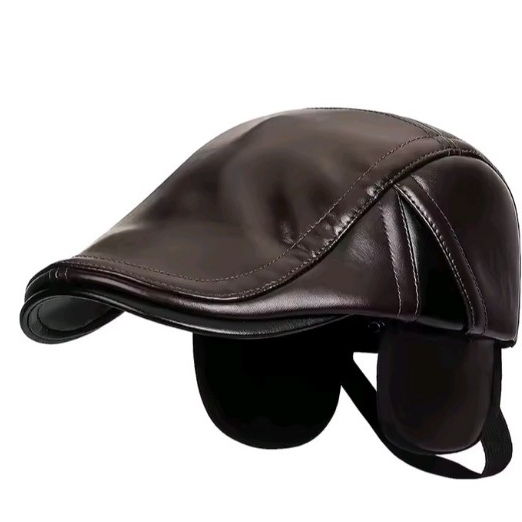 - 新品 耳当て PUレザー キャスケット ハンチング 帽子 キャップ 暖かい 茶 冬 ユニセックス メンズ レディース