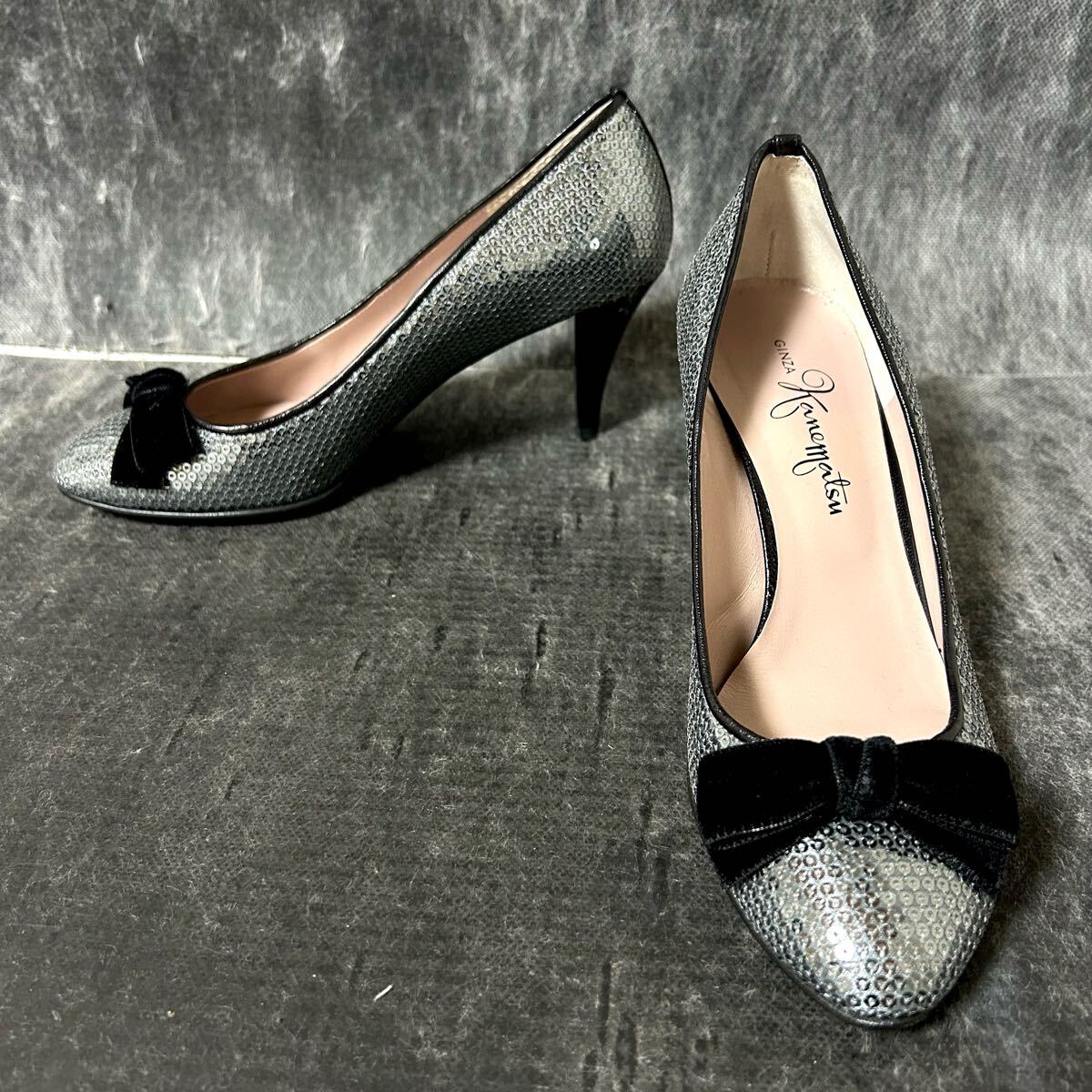 - GINZA Kanematsu 銀座かねまつ リボンパンプス スパンコール パンプス 23cm シルバー ブラック *EO