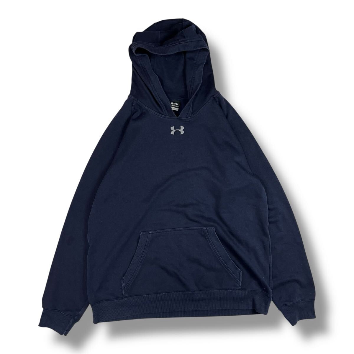 - (TK1017)【美品】 UNDER ARMOUR アンダーアーマー プルオーバー パーカー フーディー ネイビー スポーツ センターロゴ L