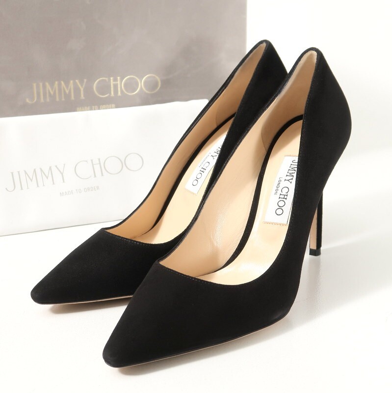 - GS4045*イタリア製 JIMMY CHOO ジミーチュウ Size 39.5 ROMY 100 スエードレザー ポインテッドトゥパンプス 靴 ブラック