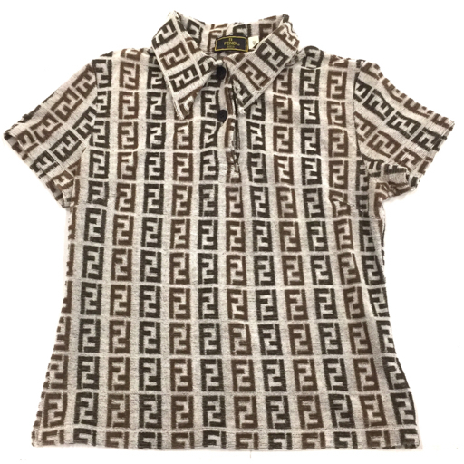 - FENDI フェンディ ニット 半袖 ポロシャツ サイズ42 ズッカ柄 イタリア製 レディース コットン ブランド服